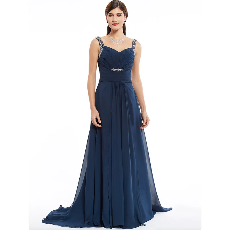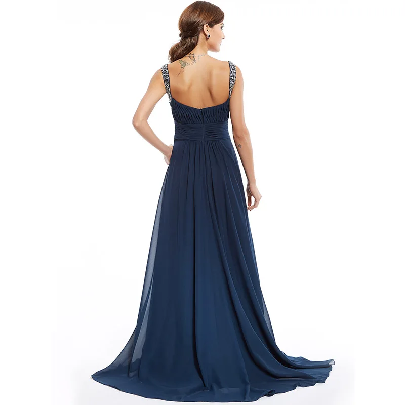 Hot Sale Dressv dark navy long evening dress cheap beading ruched sleeveless wedding party formal dress a li