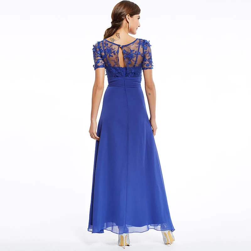 BEST QUALITY Tanpell royal blue appliques prom dress cheap burgundy floor length short sleeves dress back zipper