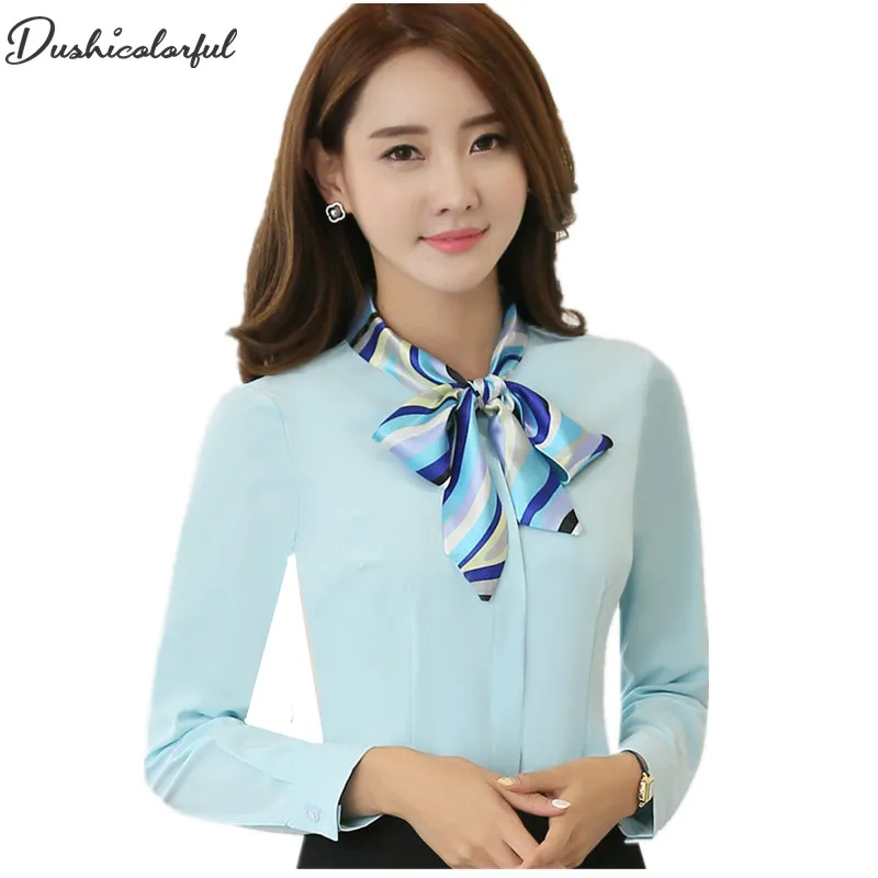 TOP Dushicolorful Spring New women tops and blouses formal professional work wear plus size modis bluew