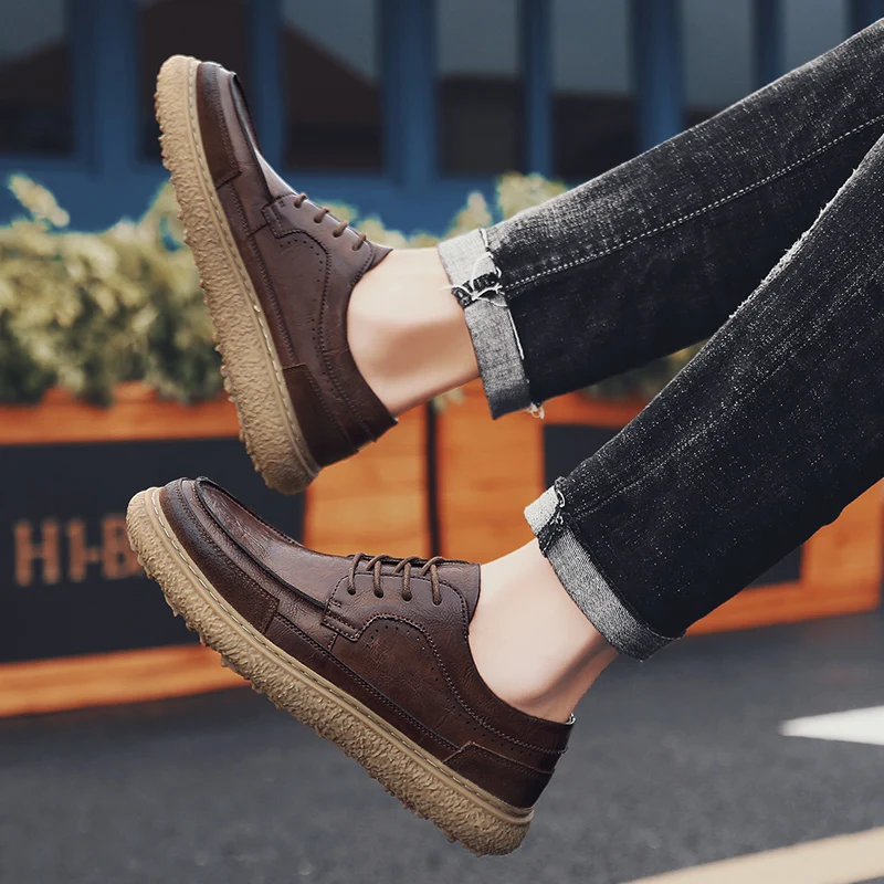 ORIGINAL Brand Men Leather Brogue Shoes Lace up lightweight British Dress Footwear Genuine leather formal Mo
